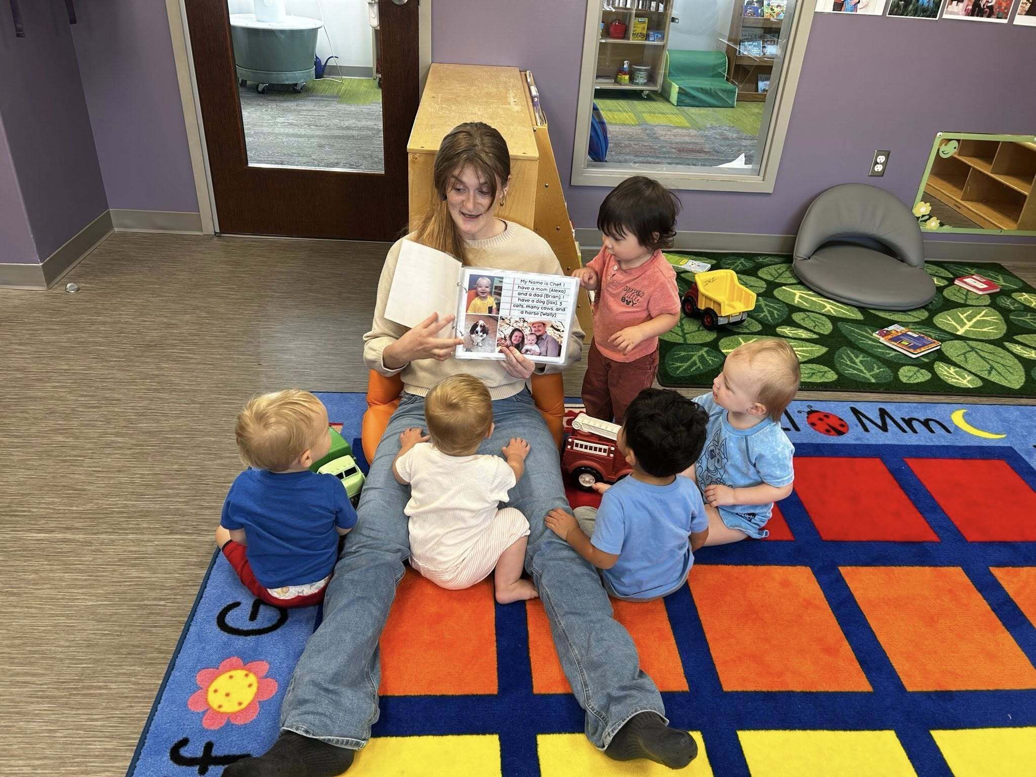 Our Infant II classroom hosts kids ages 12 months to 2 years old. The children are supported in walking, running, and climbing. They begin to maneuver the outdoor classroom with independence and develop a plethora of new words! The teachers support children throughout the day with simple instructions and transition songs. A consistent routine and comforting teachers keep these children feeling safe away from home. These children begin transitioning up to join the toddler room around two years old.